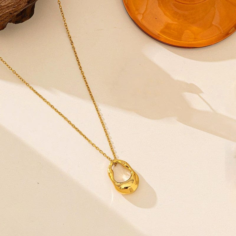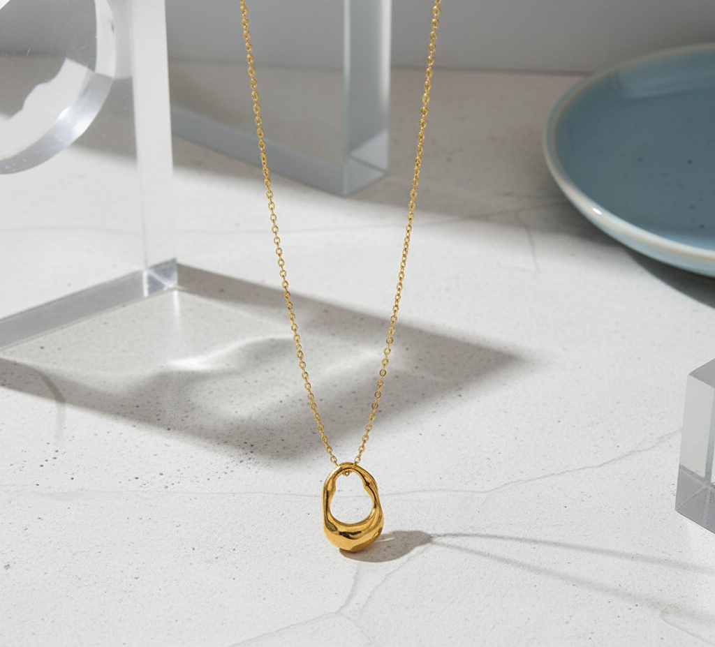 Effortless Style. Guaranteed Durability. Discover The Golden Tide Necklace, featuring a unique, wavy abstract pendant that delivers a modern, artistic touch. Coated with luxurious 18K Gold PVD Plating over high-grade stainless steel, this piece is built to last. Core Features: Life-Proof: Fully Waterproof and Anti-Tarnish. The brilliant gold color will not fade, rust, or discolor. Skin-Friendly: Crafted with Hypoallergenic materials for comfortable, all-day wear. Design: Modern, fluid abstract pendant on a delicate chain. Perfect for Everyday Wear or chic layering