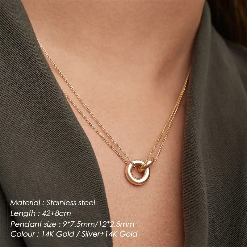 PVD Coated 14K Gold Real Gold Plated Circle Stainless Steel Simple Style Waterproof Non Tarnish 304 Stainless Steel Lobster Trigger Clasp Closure Pendant Necklace
